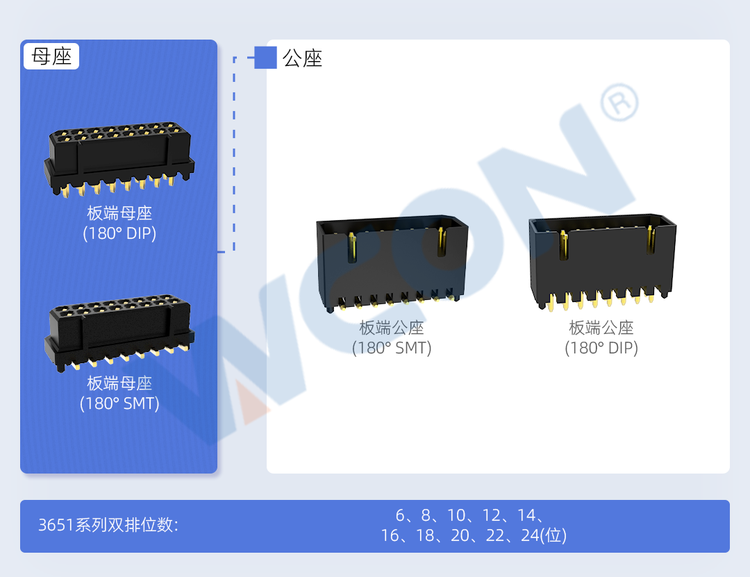 隨著智能制造發(fā)展的不斷深入,設(shè)備、機(jī)器、系統(tǒng)之間的互聯(lián)互通需求越來(lái)越大。這一趨勢(shì)導(dǎo)致對(duì)工業(yè)連接器的性能、可靠性和集成度提出了更高的要求。WCON Electronics 的 3651 系列板對(duì)板連接器間距為 1.25 毫米,可滿足工業(yè)和醫(yī)療設(shè)備對(duì)小型化、集成化和高速性能的高要求,同時(shí)還能適應(yīng)緊湊的設(shè)計(jì)空間。