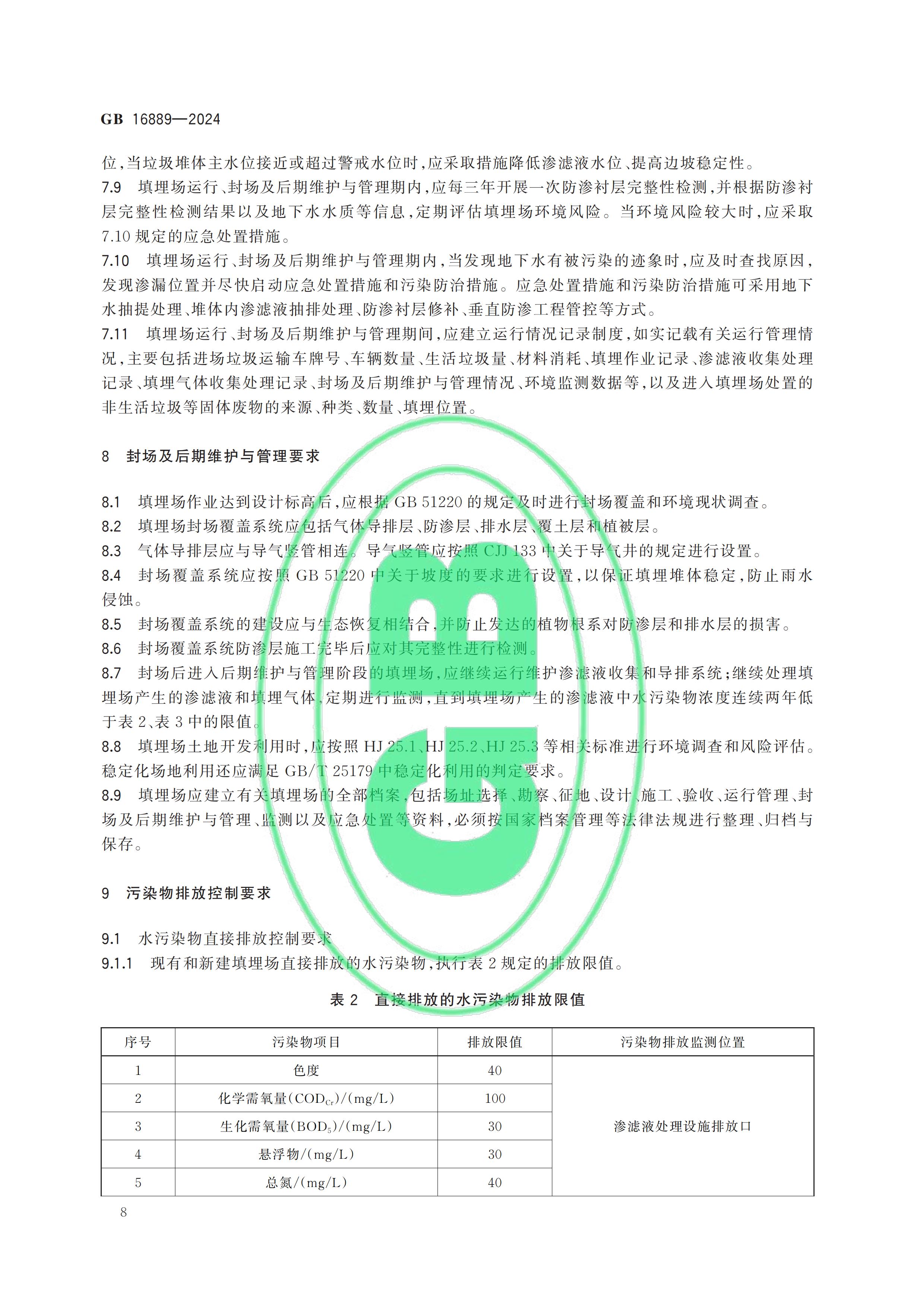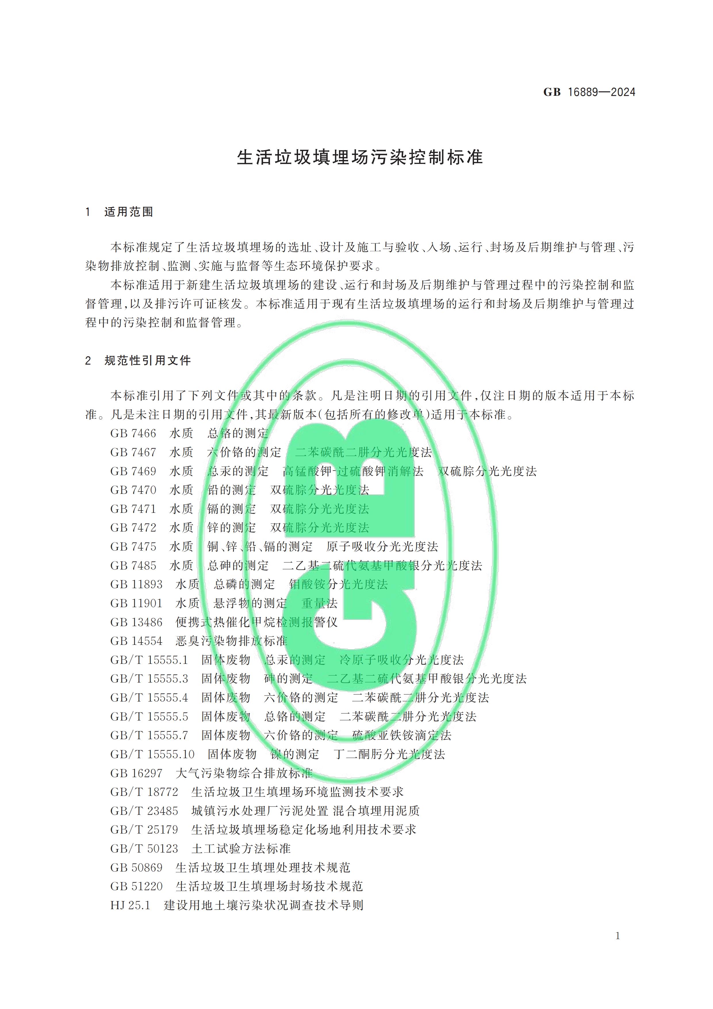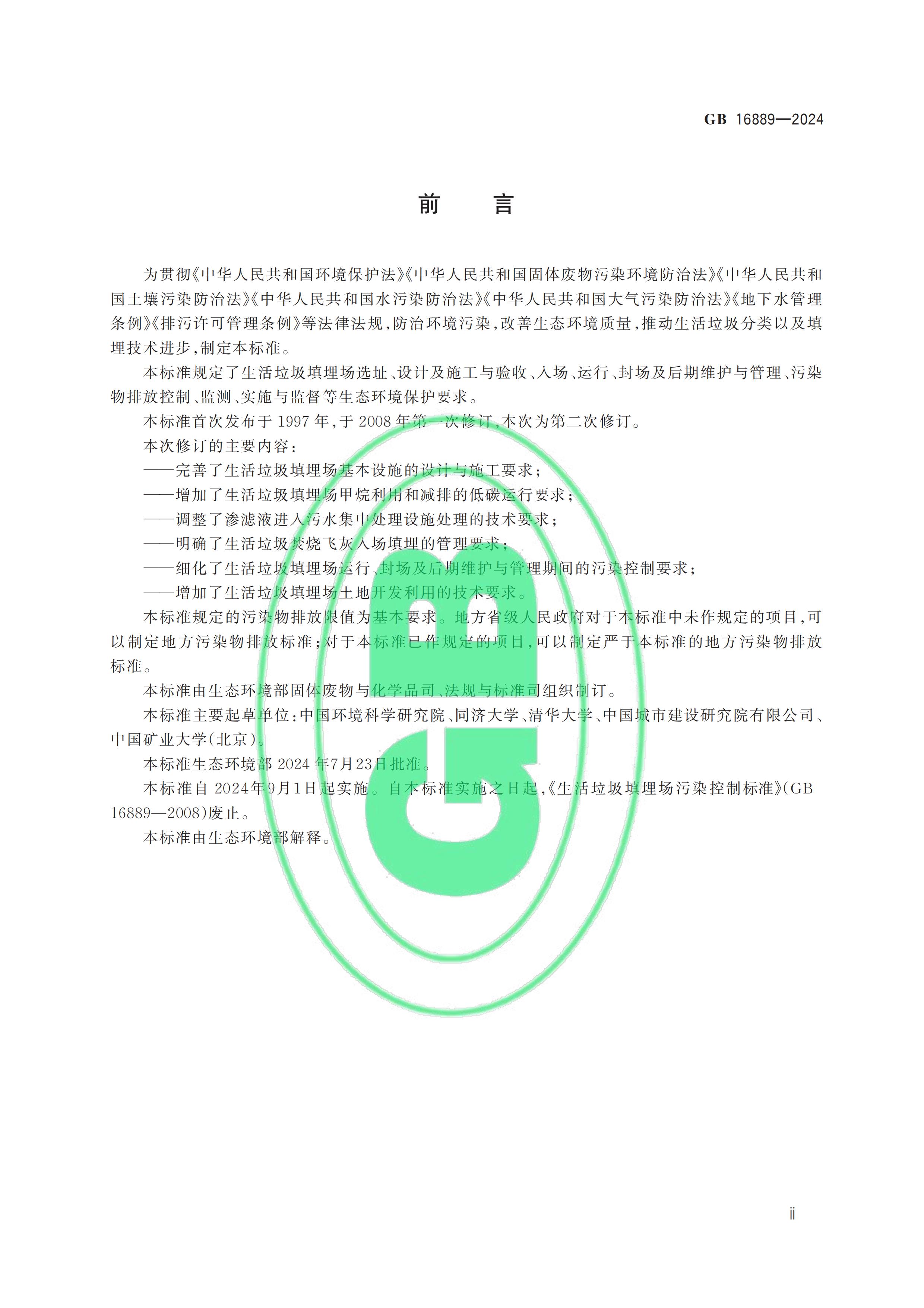 從“全國標準信息公共服務平臺”獲悉,國家標準《生活垃圾填埋場污染控制標準》(GB 16889-2024)已于2024年7月24日正式發(fā)布,新標準將替代原先的GB 16889-2008,于2024年9月1日起正式實施。以下是GB 16889-2024標準全文: