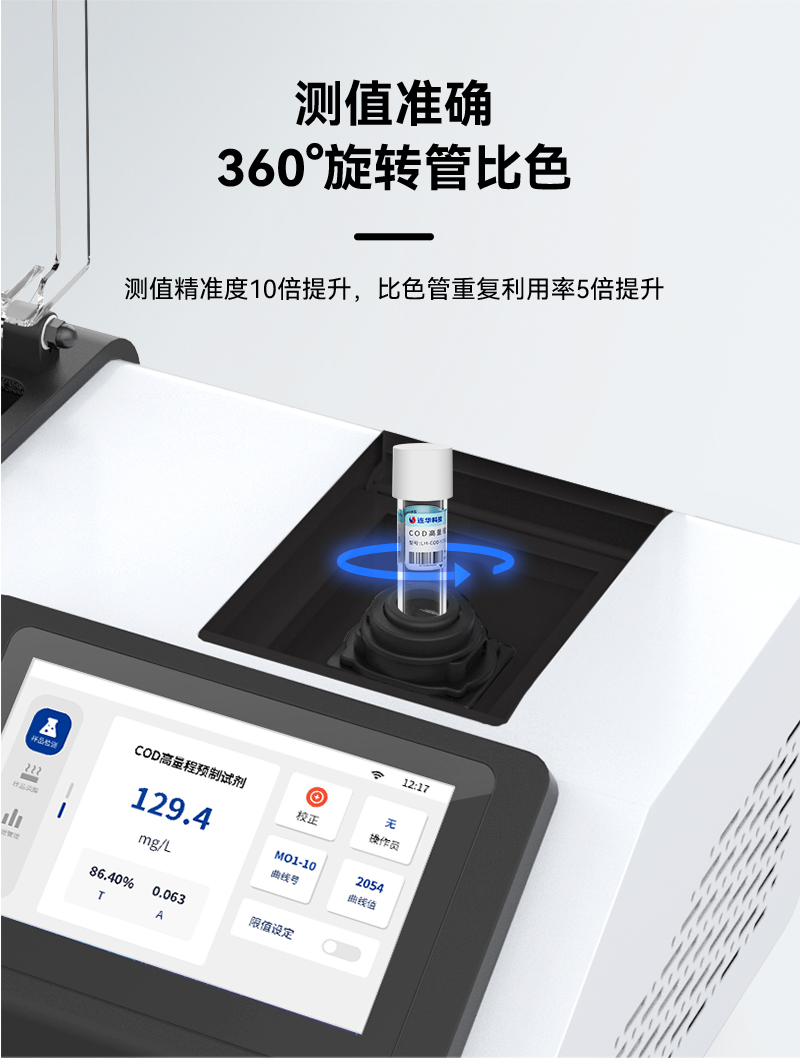 而說到比色,LH-C500更是獨具匠心。它支持360°旋轉管比色模式,不僅提高了測值的穩(wěn)定性,還能讓比色管得到更充分的利用,降低了實驗配件的成本支出。同時,內置的7吋1024*600分辨率IPS全視角觸控屏,讓用戶在各種環(huán)境下都能清晰顯示實驗結果,操作也更加直觀簡單。