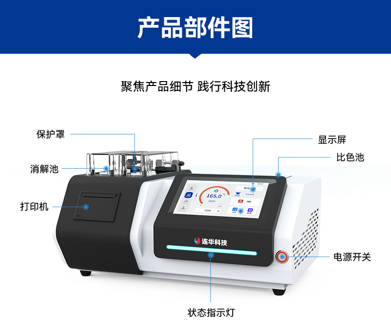 除了以上這些亮點,LH-C500的檢測項目還完全符合國家行業(yè)標準,如COD-《HJ/T399-2007》、氨氮-《HJ535-2009》、總磷-《GB11893-89》等,讓用戶在檢測過程中更加放心、安心。同時,產品配套齊全,包括各種液體耗材、密封反應管、冷卻架、管比色架、比色皿座、移液槍、定量器、一機打印紙等,讓用戶在使用過程中更加省心、便捷。
