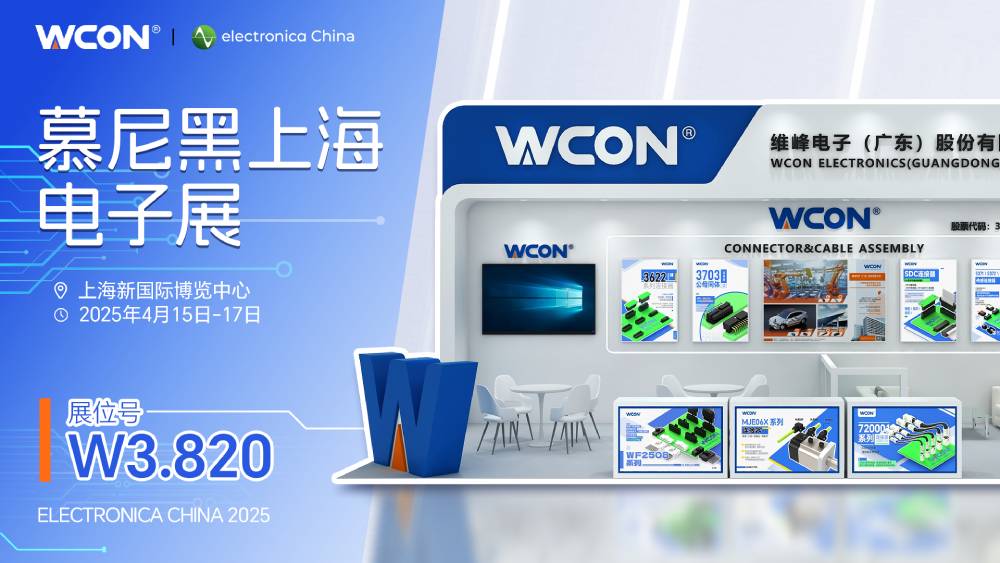 2025年慕尼黑電子展將于 2025年4月15日至17日在上海新國際博覽中心舉行。本次活動期間,WCON Electronics(“WCON”)將位于 W3.820展位,我們熱忱邀請行業合作伙伴蒞臨參觀。