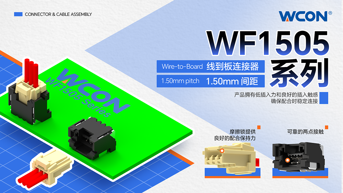 WF1505系列壓接型線對板連接器:1.50mm間距,精小可靠,緊湊空間穩定連接